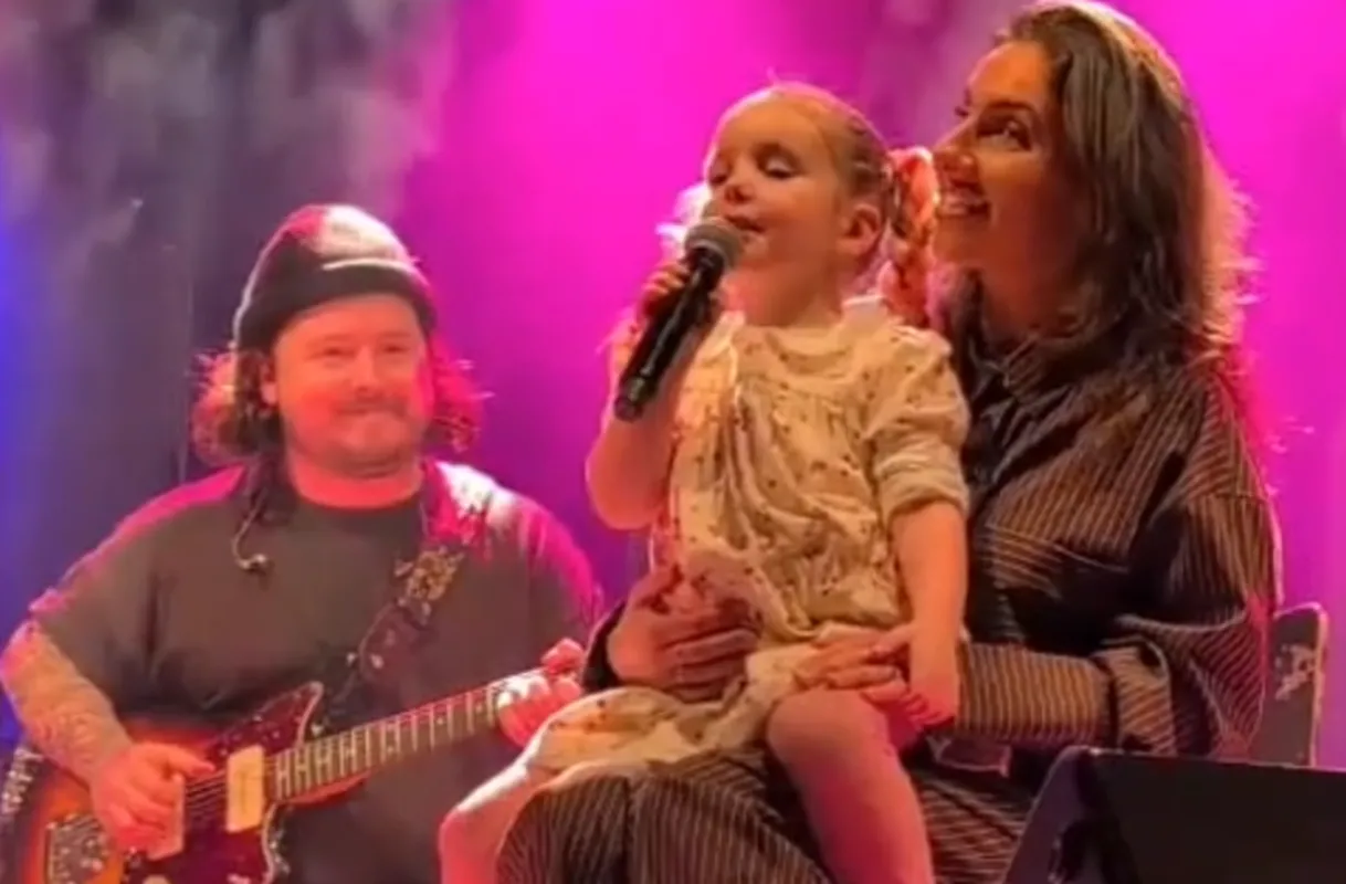 Assise sur les genoux de Rafaëlle, Maya a immédiatement capté l'attention de toute la salle. À seulement quatre ans, elle a lancé Golden, gardant le rythme comme une petite pro devant la foule.