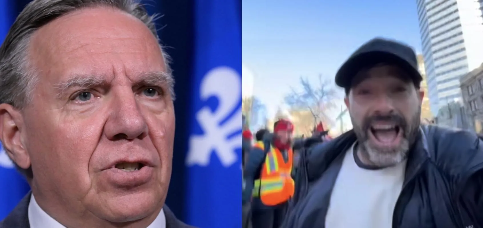 Afin de défendre les enseignants, enseignantes et membres de soutien, Guillaume a ramassé François Legault, alors qu'on peut voir l'animateur prendre part aux manifestations.